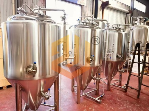 精釀啤酒設備發酵罐:啤酒發酵(jiào)罐可配置200升或者400升啤酒發酵罐,整體設計采用頂部(bù)人孔設計思路,采用水(shuǐ)封(fēng)機械式排氣閥設計,可自由設定壓力(lì)排出,自動排壓;溫度采用夾套降溫的方式,單(dān)罐單控(kòng),發酵溫度可(kě)自由設定溫(wēn)度,自動控製;保溫采用80MM的保(bǎo)溫層;發酵罐配有液位裝置,可以觀察內部液位;工(gōng)作壓力2bar,成品產品(pǐn)保壓3bar72小時以上。